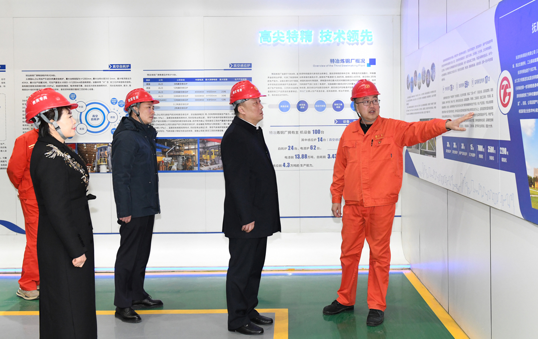 在公司產(chǎn)業(yè)化一期生產(chǎn)現(xiàn)場(chǎng),胡哲一行觀看了特冶生產(chǎn)裝備,詳細(xì)詢問了設(shè)備產(chǎn)能、產(chǎn)品質(zhì)量及技改工程建設(shè)等情況。祁勇向胡哲一行詳細(xì)介紹了撫順特鋼近年來的生產(chǎn)經(jīng)營(yíng)、技改項(xiàng)目建設(shè)和發(fā)展新質(zhì)生產(chǎn)力等方面情況。當(dāng)?shù)弥獡犴樚劁搱?jiān)持“特鋼更特”發(fā)展理念,在現(xiàn)階段鋼鐵行業(yè)市場(chǎng)低迷的情況下,企業(yè)生產(chǎn)經(jīng)營(yíng)保持了良好勢(shì)頭,新建的特冶技改項(xiàng)目已經(jīng)陸續(xù)投產(chǎn),特冶產(chǎn)能不斷增加時(shí),胡哲一行對(duì)撫順特鋼的快速、高質(zhì)量發(fā)展給予了高度評(píng)價(jià)。他表示,撫順特鋼的高質(zhì)量發(fā)展振奮人心,希望撫順特鋼繼續(xù)保持良好的發(fā)展勢(shì)頭,圍繞發(fā)展新質(zhì)生產(chǎn)力持續(xù)發(fā)力,為撫順地方經(jīng)濟(jì)發(fā)展再做新貢獻(xiàn),撫順市委、市政府將持續(xù)優(yōu)化營(yíng)商環(huán)境,全力支持撫順特鋼的高質(zhì)量發(fā)展。