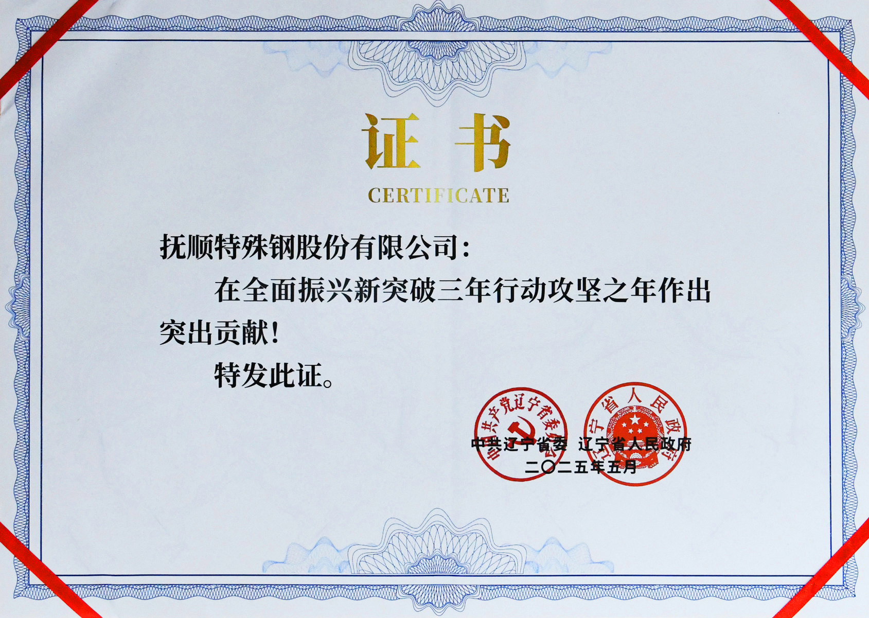 5月13日,遼寧省委、省政府在沈陽召開“2025遼寧省企業(yè)大會(huì)”,對(duì)在全面振興新突破三年行動(dòng)攻堅(jiān)之年作出突出貢獻(xiàn)的241戶企業(yè)予以通報(bào)表揚(yáng),撫順特鋼榜上有名。撫順特鋼董事長、總經(jīng)理孫立國代表公司出席大會(huì)。