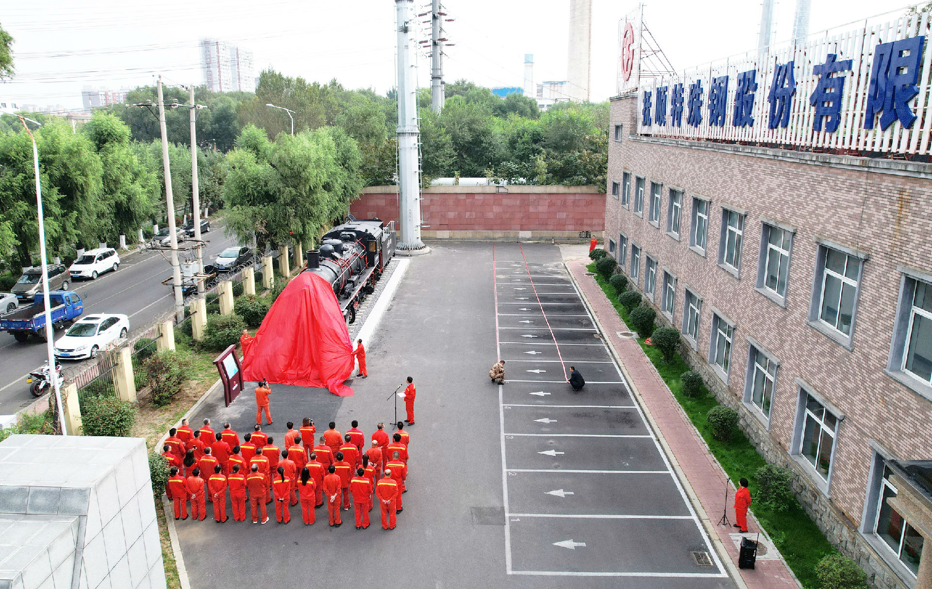祁勇在揭幕儀式上發(fā)表了熱情洋溢的講話。他指出,在喜迎新中國成立76周年華誕,慶祝沙鋼集團(tuán)成立50周年之際,我們懷著無比崇敬與振奮的心情,共同迎來撫順特鋼蒸汽機(jī)車文創(chuàng)項(xiàng)目落成儀式的重要時(shí)刻。這既是對(duì)企業(yè)歷史的深情回望,更是對(duì)未來征程的莊嚴(yán)宣誓。他強(qiáng)調(diào)指出,今年是沙鋼集團(tuán)成立50周年,這臺(tái)蒸汽機(jī)車出廠于1975年與沙鋼“同齡”,共同傳承了50年的發(fā)展。在“1050”的編號(hào)中,“50”這個(gè)數(shù)字又與沙鋼50周年形成跨越時(shí)空的呼應(yīng),傳遞著“50載同行”的深刻寓意。其50年的歷史脈絡(luò)與沙鋼的發(fā)展年輪交相輝映,無論是過去運(yùn)輸材料時(shí)的堅(jiān)韌,還是如今作為精神符號(hào)的厚重,這臺(tái)蒸汽機(jī)車始終在訴說:它代表的“火車頭精神”,是直面挑戰(zhàn)時(shí)的“牽引力”,是跨越難關(guān)時(shí)的“加速度”,是守正創(chuàng)新時(shí)的“精準(zhǔn)度”。我們?yōu)檫@臺(tái)蒸汽機(jī)車文創(chuàng)項(xiàng)目舉行落成儀式,不僅是為了銘記一段工業(yè)記憶,更是為了讓“火車頭精神”在新時(shí)代的撫順特鋼人心中生根發(fā)芽。當(dāng)前,撫順特鋼正向著“中國第一特冶”的目標(biāo)穩(wěn)步邁進(jìn),這正是“火車頭精神”在新時(shí)代的延續(xù)——以技術(shù)升級(jí)為“蒸汽(爭(zhēng)氣)”,以創(chuàng)新研發(fā)為“軌道”,以使命擔(dān)當(dāng)為“方向”,推動(dòng)撫順特鋼在國內(nèi)特鋼行業(yè)持續(xù)領(lǐng)跑。希望這臺(tái)蒸汽機(jī)車能成為我們的“精神燈塔”,讓每一位員工在駐足凝視時(shí),都凝聚著“精益求精、追求卓越”的精神;都能感受到“腳踏實(shí)地、勇毅前行”的力量。讓我們以“火車頭精神”為引領(lǐng),在沙鋼集團(tuán)成立50周年的新起點(diǎn)上,共同書寫撫順特鋼更加輝煌的篇章,衷心祝愿撫順特鋼在新時(shí)代的征程上,如這臺(tái)蒸汽機(jī)車般,動(dòng)力澎湃、一往無前。