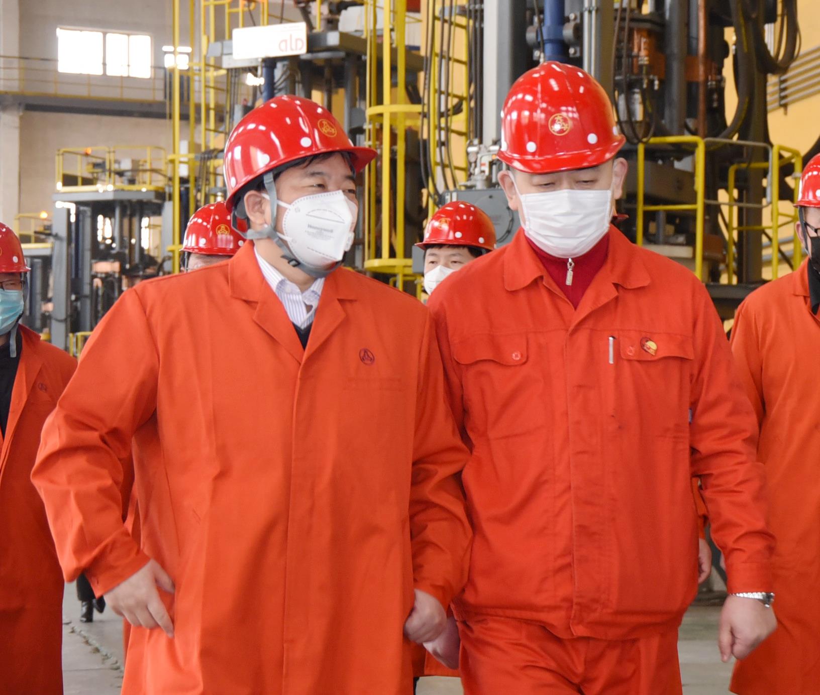 孫立國陪同錢剛參觀撫順特鋼生產現(xiàn)場